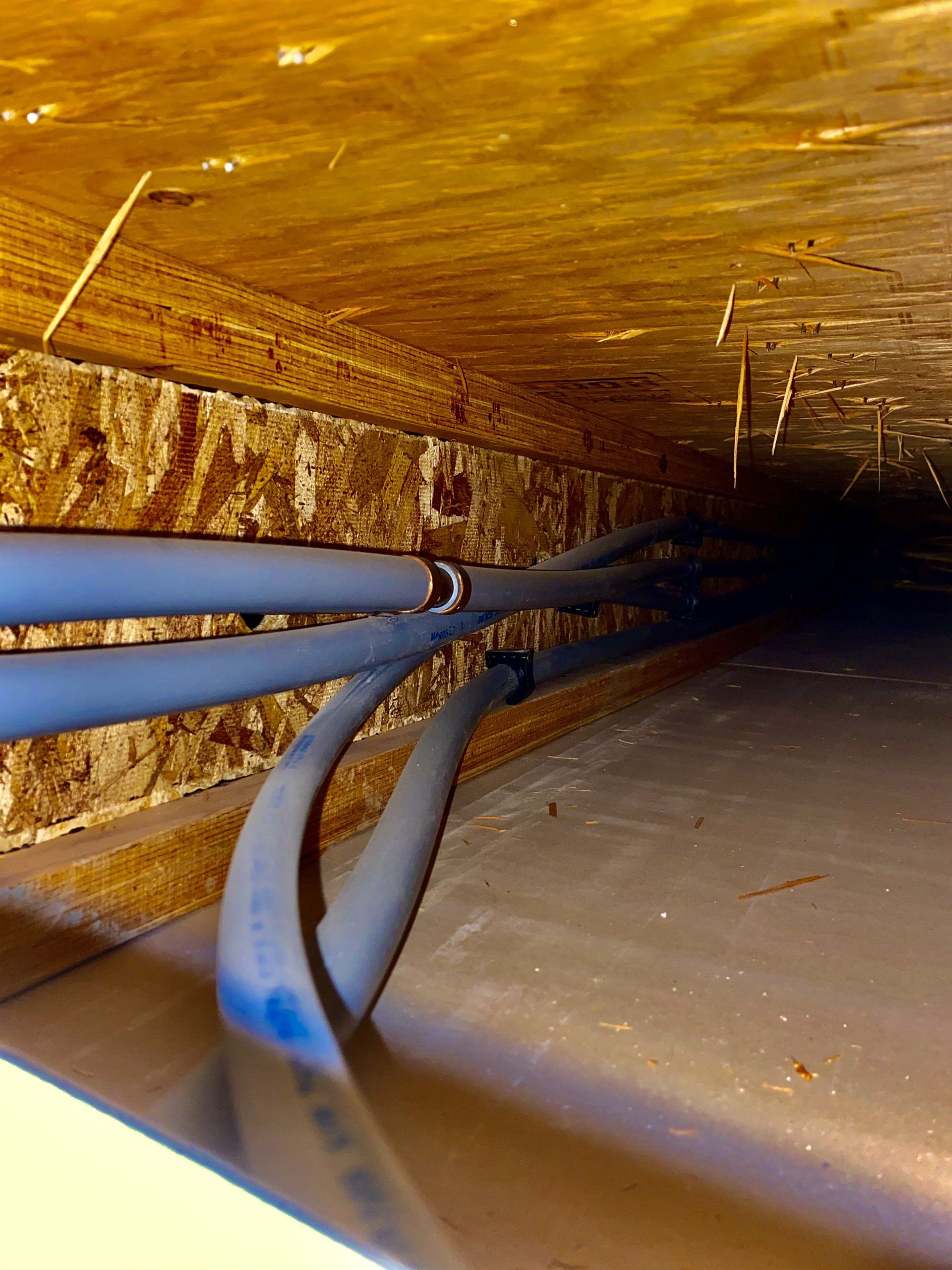 After years of using poly-b pipe it was discovered that exposure to the suns UV rays wears on the resin of poly-b piping, this can lead to many, tiny pinhole leaks about 10 to 20 years after installation.